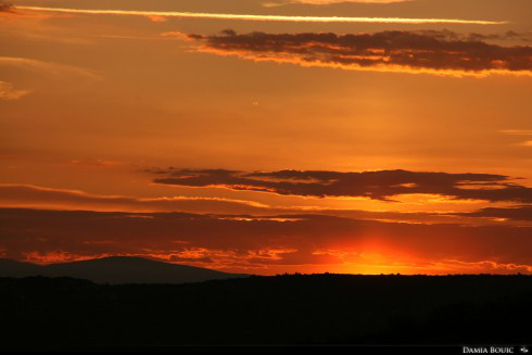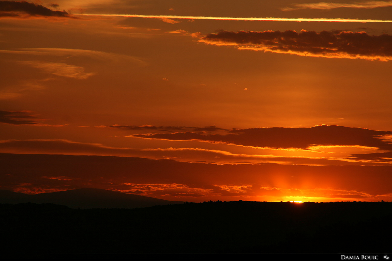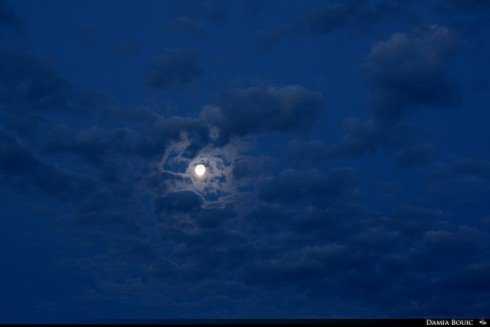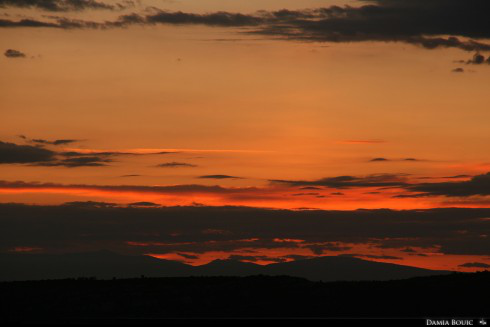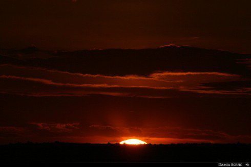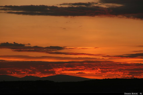 La Lune Gibbeuse nous observe au travers des alto-cumulus, qui joueront un peu avec nos nerfs. Mais ce qui nous intéresse se situe par là, au niveau de ces montagnes lointaines. Le Soleil devrait s’y lever, accompagné d’un petit disque noir oblong : Vénus.
