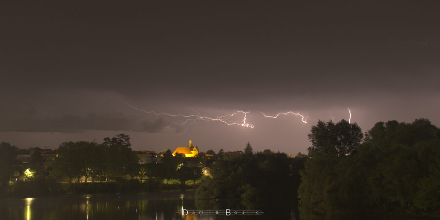La journée du 15 Mai aura été une journée placée sous le signe de l’instabilité, assez marquée par moment. Plusieurs grappes de cellules emprunteront le chemin habituel du Pays Basque pour remonter vers le Nord-Est. Peu de cellules passeront vraiment sur Bergerac, à part un orage bref mais électrique en début de soirée. Un peu plus tard, la nuit tombée, mon regard voyait des flashs vers l’Est. Je me décide à organiser ma première sortie. À pieds, sur la Voie Verte. Trois photos, certes pas exceptionnelles, mais qui me permettent d’inaugurer le début de la saison orageuse 2022.