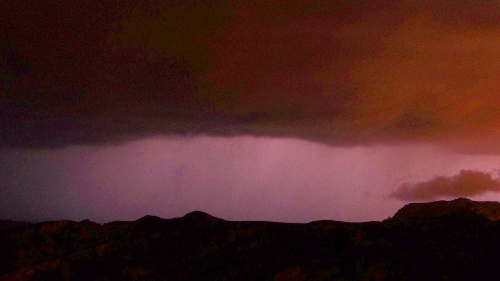 Pire même : elle se disloquera progressivement. Mais mon regard est attiré par les cellules de la première ligne orageuse. Celles-ci s’illuminent régulièrement. Je change de position pour assister un très beau spectacle : celui d’un orage illuminé de l’intérieur. De nombreux éclairs et coup de foudre extranuageux se manifesterons.