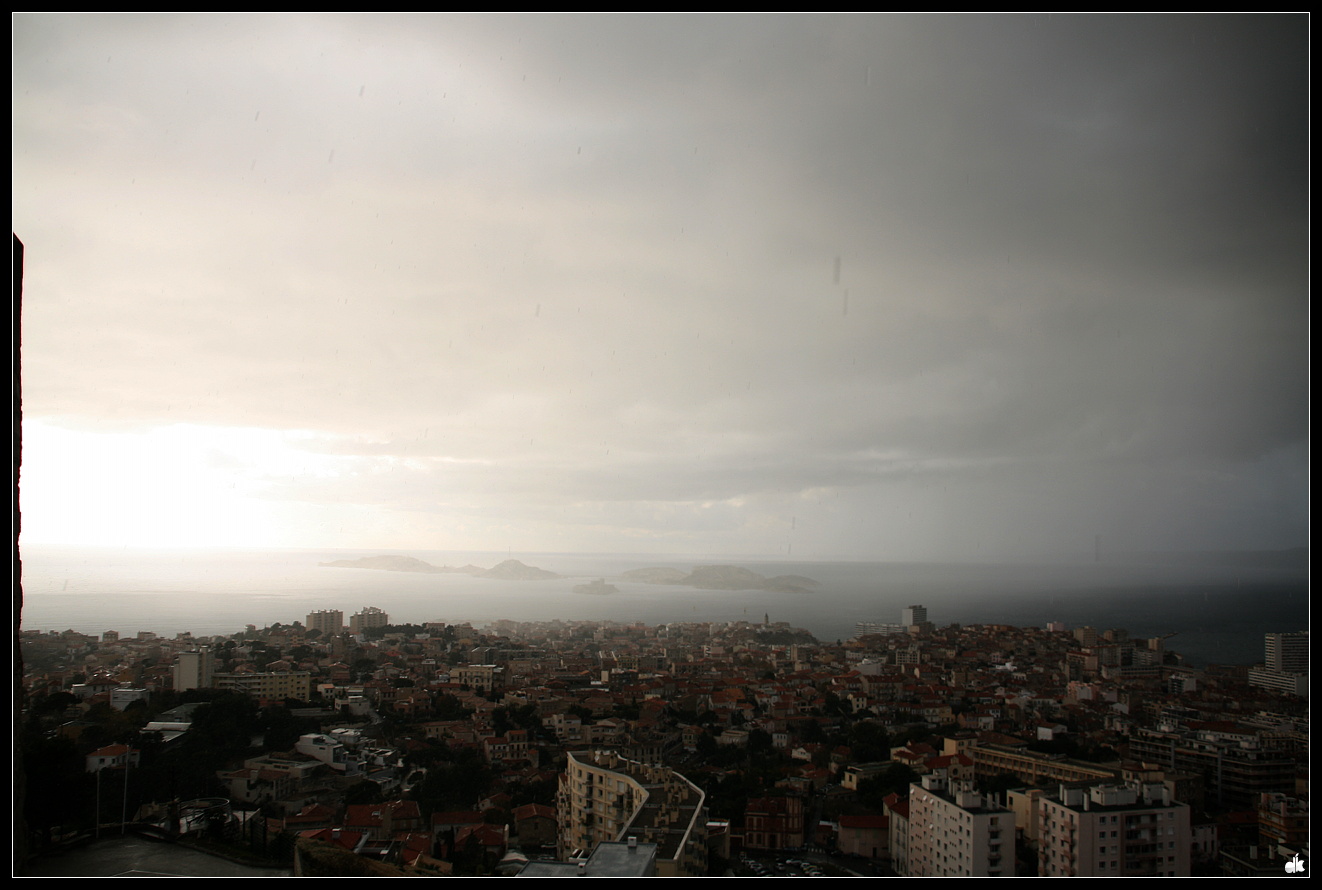 Je vois le massif de Marseilleveyre (à droite, sur l’horizon) disparaître dans les pluies.