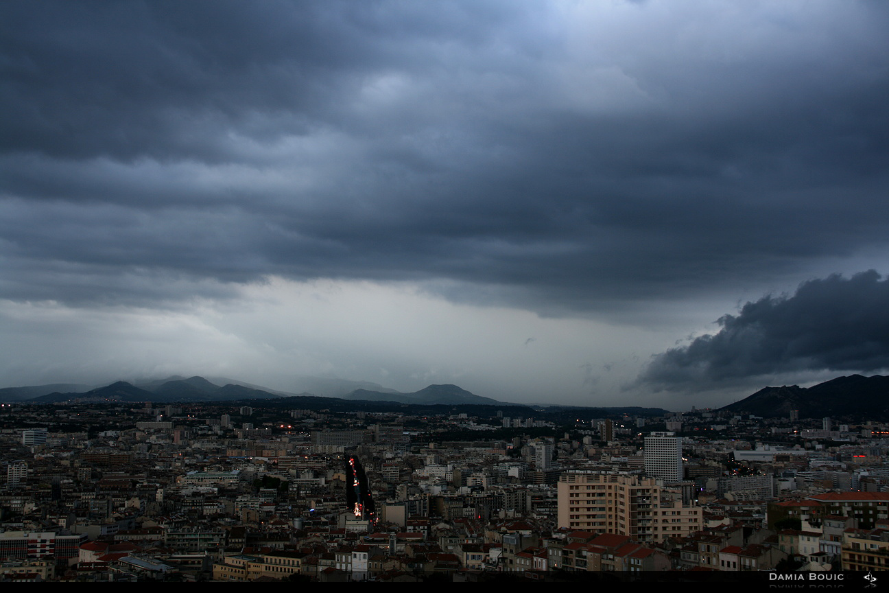 Dimanche dernier (le 21 Novembre) des orages sont passés dans la rade de Marseille puis dans la ville même. Des orages très photogéniques comme vous allez le voir. Ce qui est rare car ici, pour avoir des beaux orages, c’est pas évident (généralement ce sont des monstres noyés dans la masse, donc « inphotographiables », néologisme, ahaha !).