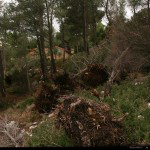 Alors voici les photos. Elles témoigneront elles-même de la violence du coup de vent. Par endroits ce sont de véritables enchevêtrements de branchages, avec plusieurs arbres les uns sur les autres. Il faut noter enfin que certains de ces pins avaient été touchés assez durement par le feu de forêt du 22 Juillet 2009 (article ici), et par l’épisode neigeux du 7 Janvier 2009 (article ici).