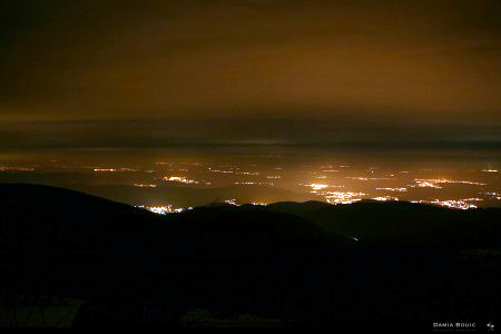 Nous pouvons y observer le plaine d’Alsace, toute illuminée. Beauté trompeuse de la pollution lumineuse…