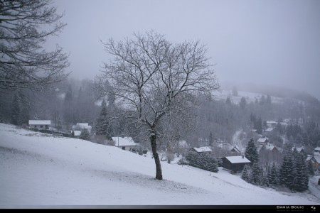 C’est à peu près reposée que je me lève le lendemain matin. Et surprise, il a neigé. Une petite couche de 3 à 5 cm. Ce qui permet une petite sortie matinale, et l’après-midi également.