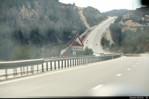 Le long de l’autoroute. J’aime bien les perspectives proposées par l’infrastructure dans ce pays vallonné.